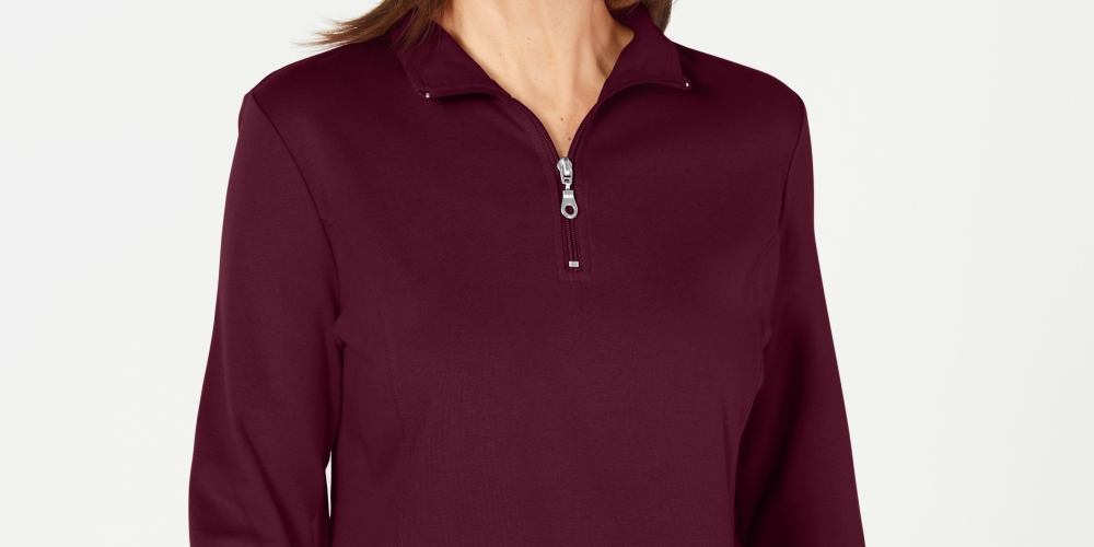 Karen Scott Women's Cotton Half Zip Mock Neck Top Red Size Medium