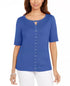 Karen Scott Women's Cotton Keyhole Studded Top Blue Size Small