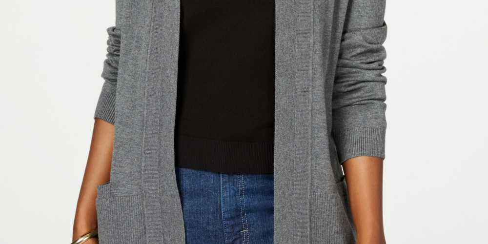 Ask a question about Karen Scott Women's Cotton Open Front Cardigan Charcoal Size Medium