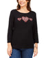 Relaxed fit; approx. 26" long|Due to generous sizing, we suggest sizing down for the perfect fit|Scoop neckline|Rhinestone hearts at front|3/4-sleeves