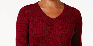 Karen Scott Women's Cotton Ribbed Marled Sweater Red Size -PS