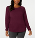 Karen Scott Women's Cotton Ribbed Sweater Burgundy Size Petite L