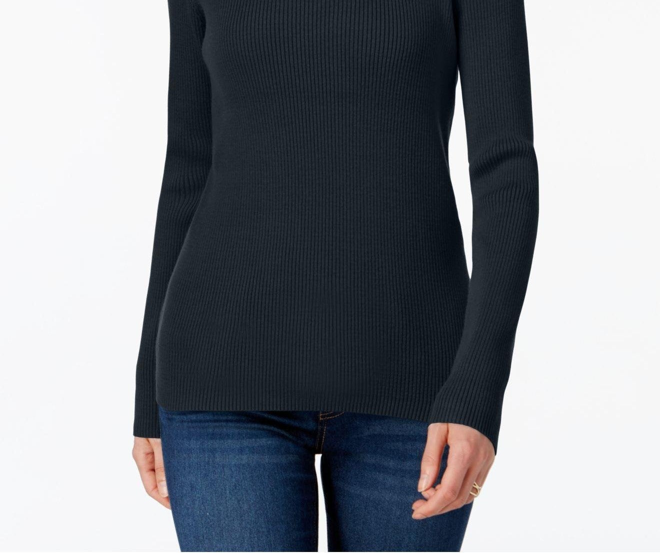 Karen Scott Women's Cotton Ribbed Turtleneck Top Black Size Medium
