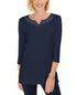 Karen Scott Women's Cotton Studded Split Neck Top Blue Size Small
