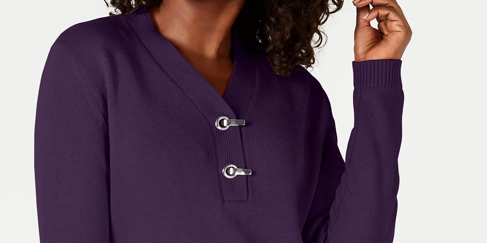 Karen Scott Women's Cotton Toggle Henley Sweater Purple Size Petite Small