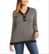 Karen Scott Women's Cotton Two Tone Henley Sweater Black Size Petite Medium