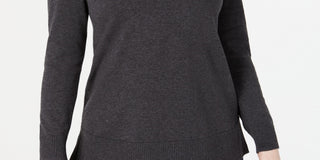 Karen Scott Women's Cotton Zip Neck Sweater Charcoal Size Medium