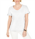 Karen Scott Women's Eyelet Shoulder V Neck Top White Size Large