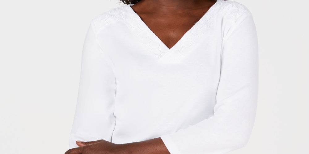 Karen Scott Women's Eyelet Trim Top White Size Medium