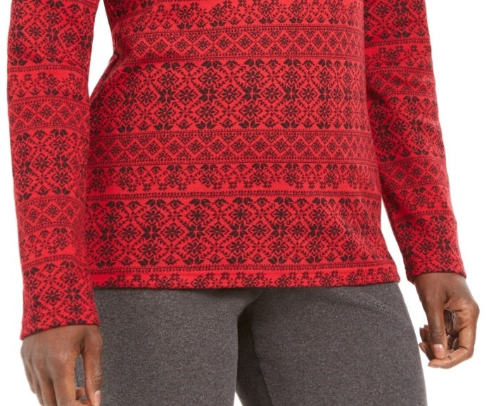 Karen Scott Women's Fair Isle Printed Mock Neck Top Red Size Petite Small