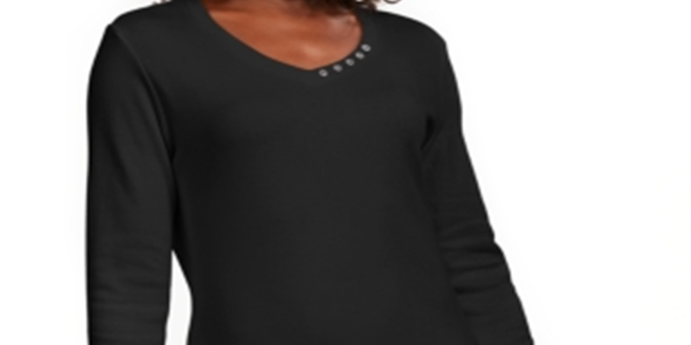 Ask a question about Karen Scott Women's Grommet Neck Cotton Top Black Size Small