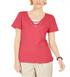 Karen Scott Women's Lace-Up Layered-Look Top Peony Coral Size XL