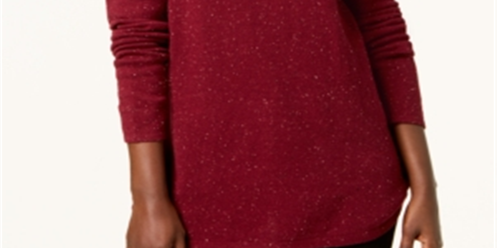 Karen Scott Women's Long Sleeve Curved Hem Sweater Red Size Petite Medium