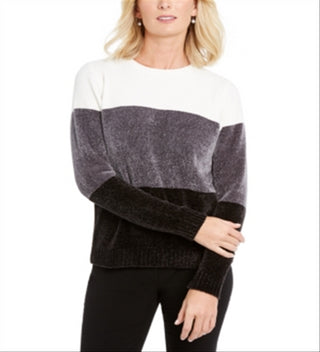 Karen Scott Women's Lucy Colorblocked Chenille Sweater Black -White Size Petite S