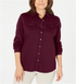 Karen Scott Women's Mixed Media Button Front Top Maroon Size S