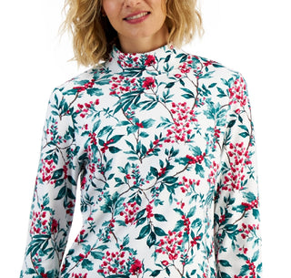 Karen Scott Women's Mock Neck Printed Top White Size Petite Small