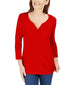 Karen Scott Women's Petite 3/4-Sleeve Henley Shirt Red Size Medium
