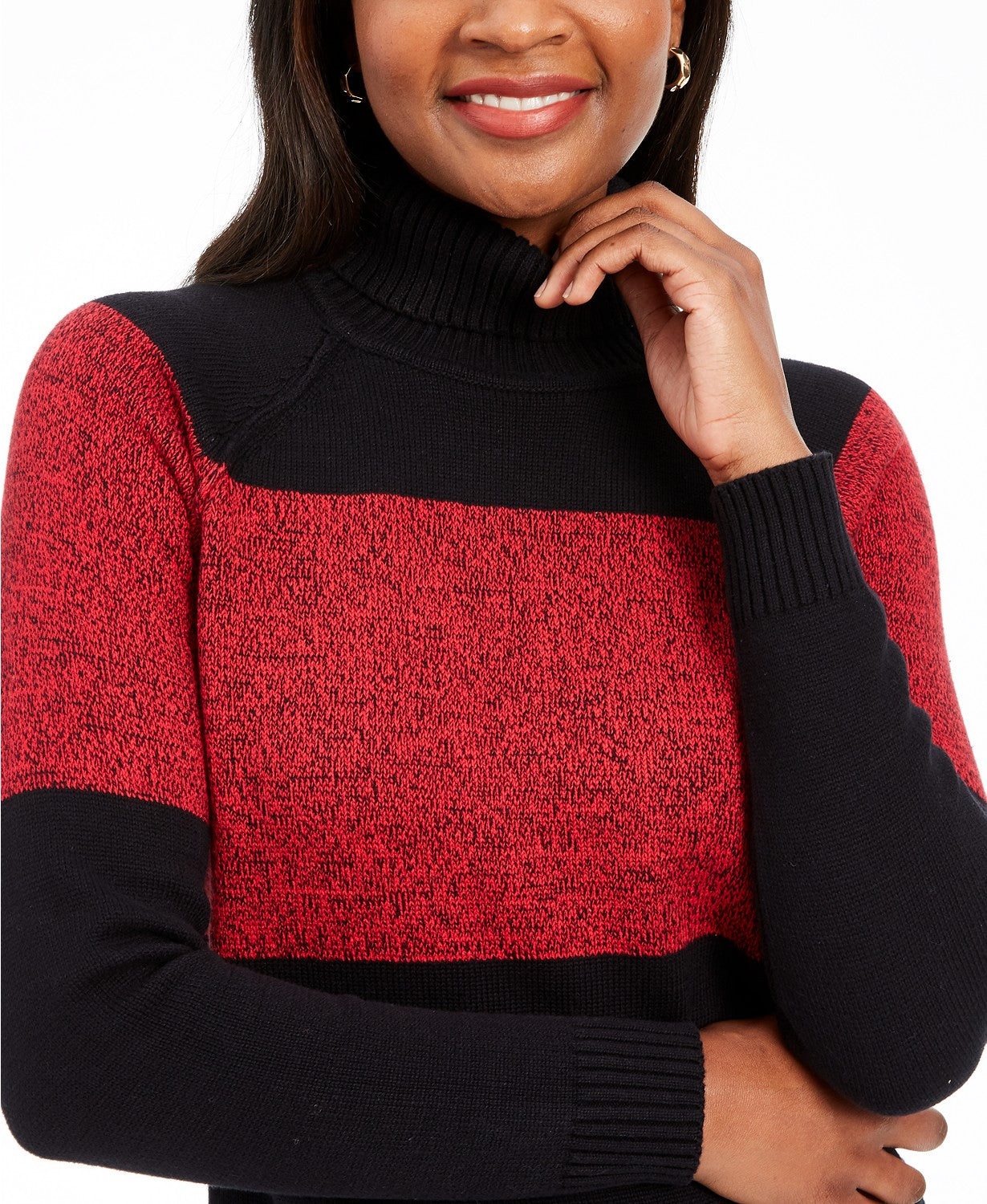Karen Scott Women's Petite Colorblock Cotton Turtleneck Sweater Size Petite