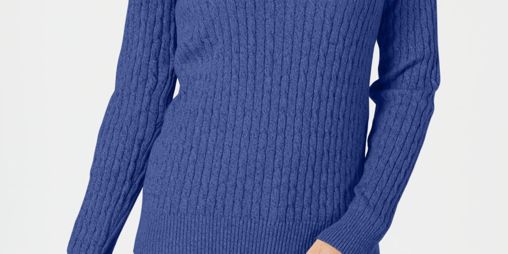 Karen Scott Women's Petite Cotton Cable-Knit Sweater Blue Size PXL