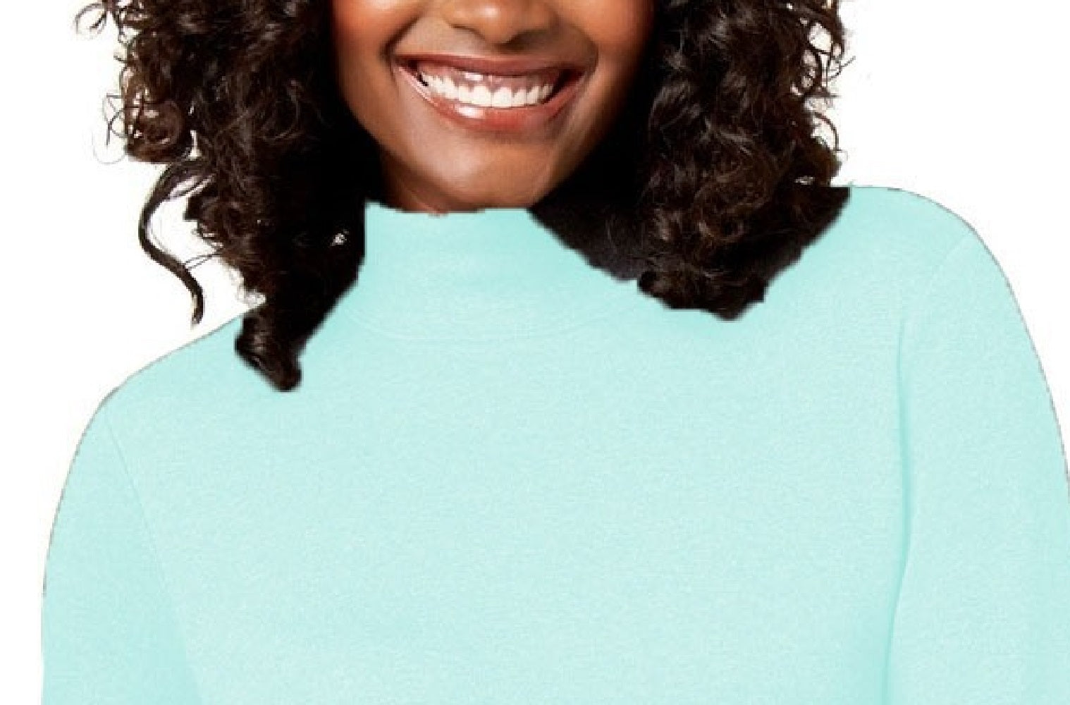 Karen Scott Women's Petite Cotton Mock-Neck Top Aqua Size Petite