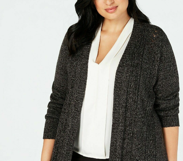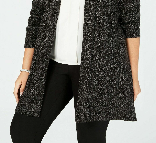Karen Scott Women's Petite Largeus Size Pointelle Open Front Cardigan Gray Size 1X