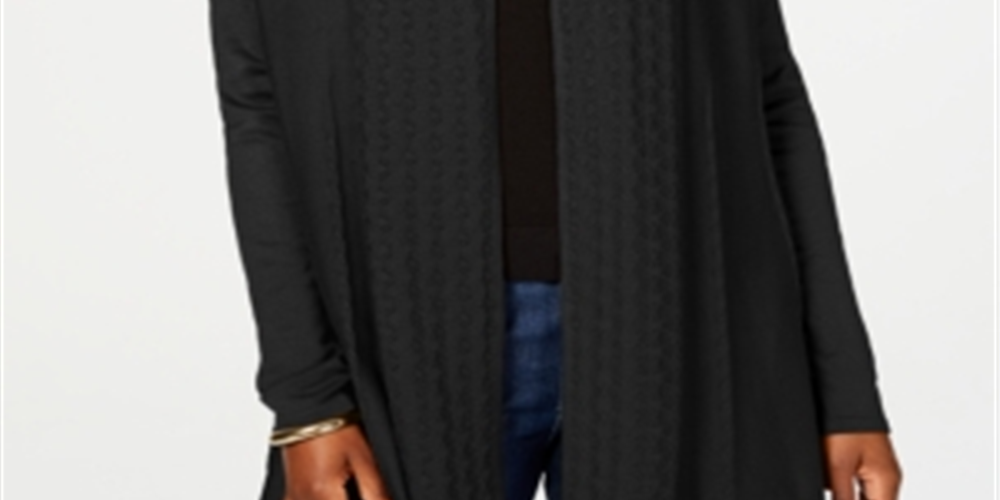 karen scott's swingy petite cotton cardigan is styled with airy pointelle knit at the collar and an open front for effortless layering