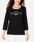 Karen Scott Women's Petite Rhinestone-Embellished Cotton Top Black Size Petite