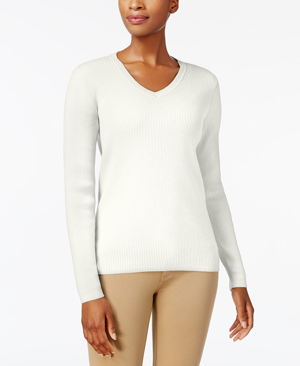 Karen Scott Women's Petite Ribbed-Knit Cotton Sweater White Size PS