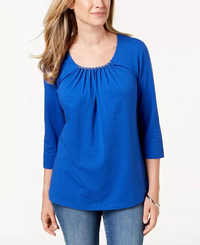Karen Scott Women's Pieced Athletic T-Shirt Blue Size Small