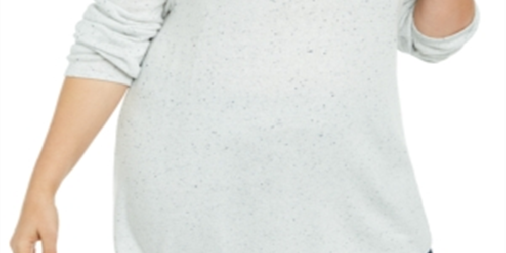 Karen Scott Women's Plus Curved Hem Confetti Speckled Sweater White Size 0X