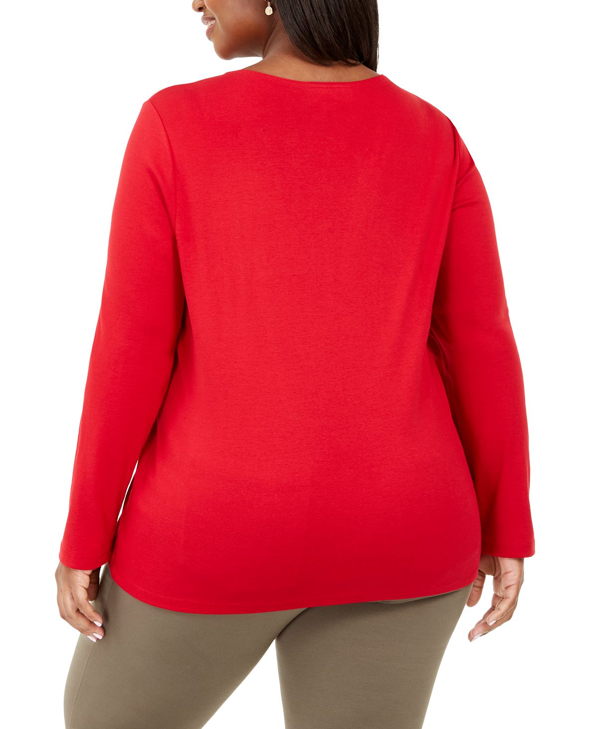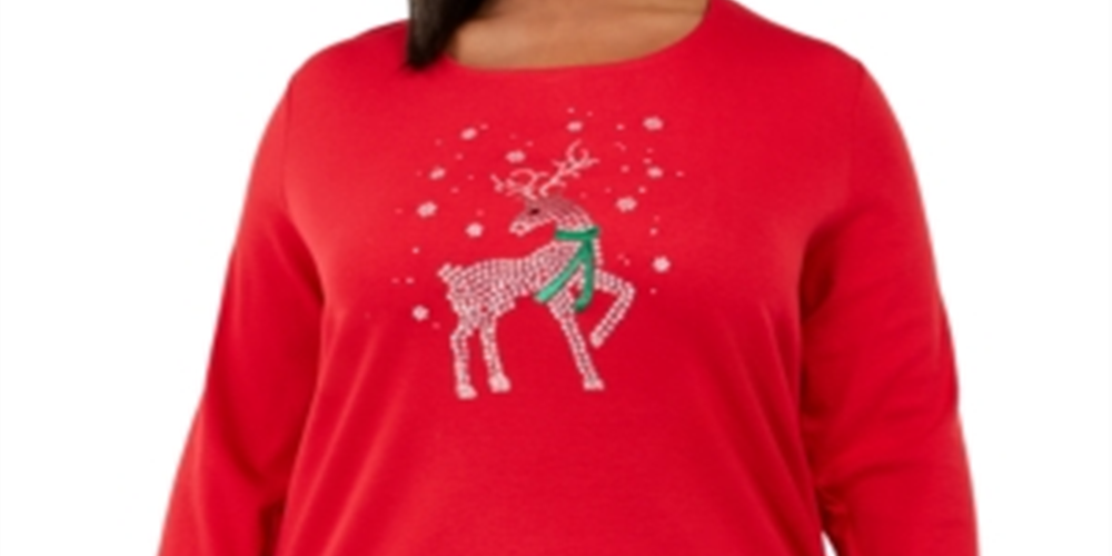 Karen Scott Women's Plus Deer Decor Embellished Top Red Size 2X