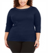 Karen Scott Women's Plus Laced Grommet Trim Cotton Top Blue Size 1X