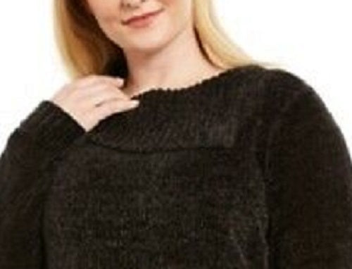 Karen Scott Women's Plus Size Chenille Split Neck Pullover Black Size 2X