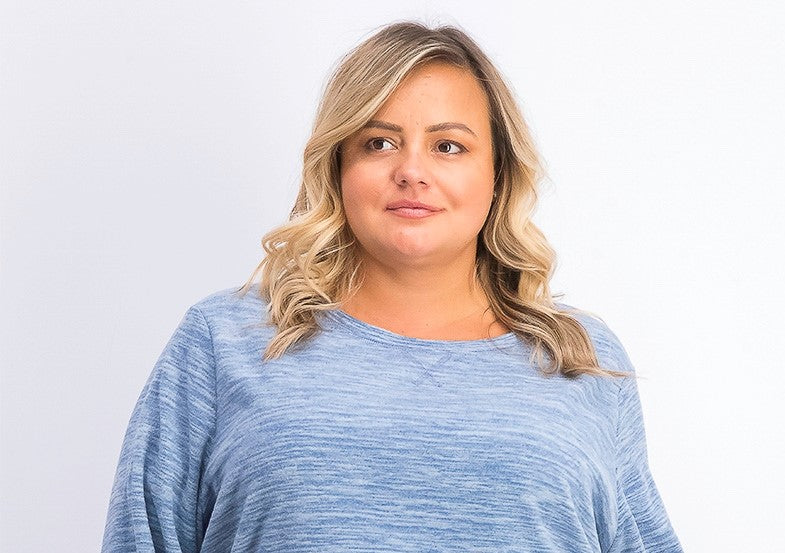 Approx. model height is 5'10" and she is wearing size 1X|Relaxed fit; approx. 29-1/2" long|Scoop neckline|Polyester|Machine washable|Imported