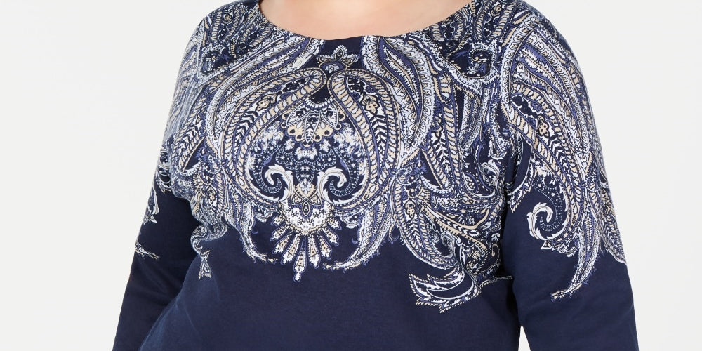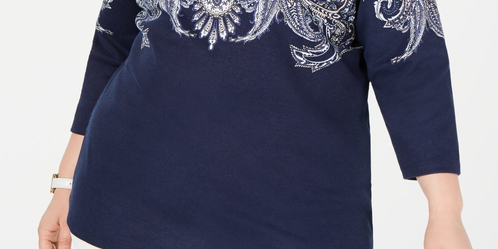 Karen Scott Women's Plus Size Printed 3/4 Sleeve Top Blue Size 0X