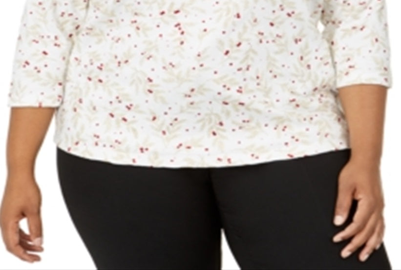 Karen Scott Women's Plus Wheat Fields Top White Size 0X