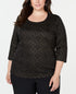 Karen Scott Women's Printed 3-4-Sleeve Top Black Size 0X