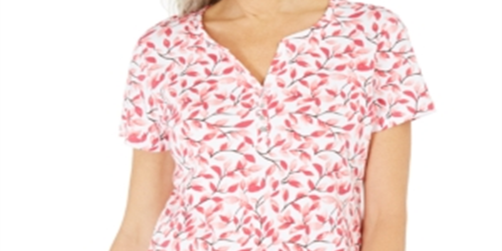 Karen Scott Women's Printed Henley Top Pink Size Medium