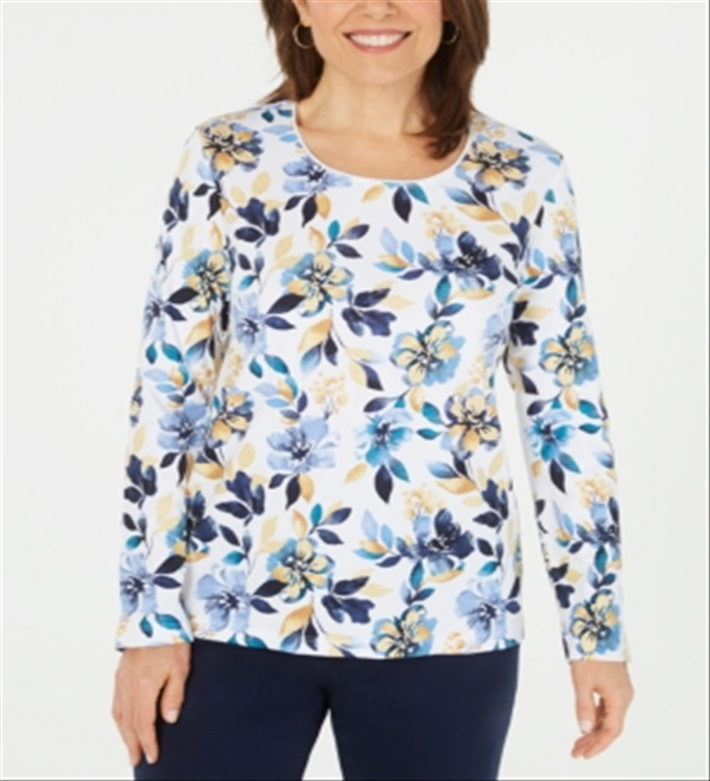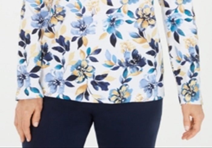 Karen Scott Women's Printed Long Sleeve Top Blue Size Medium