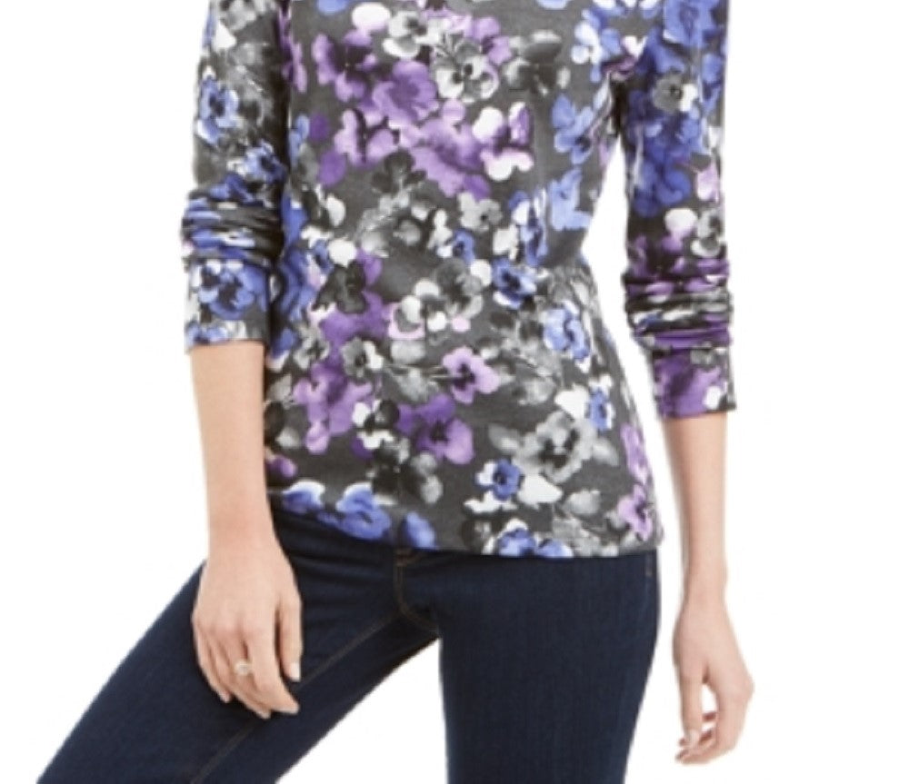 Karen Scott Women's Printed Scoop Neck Top Gray Size Large