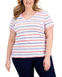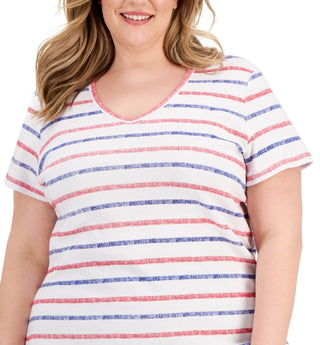 Karen Scott Women's Printed V Neck T-Shirt Red Size 1X