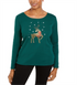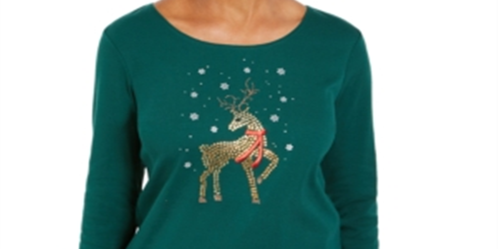 Karen Scott Women's Rhinestone Reindeer Holiday Shirt Green Size X-Small