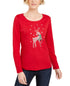 Karen Scott Women's Rhinestone Reindeer Holiday Shirt Red Size X-Large