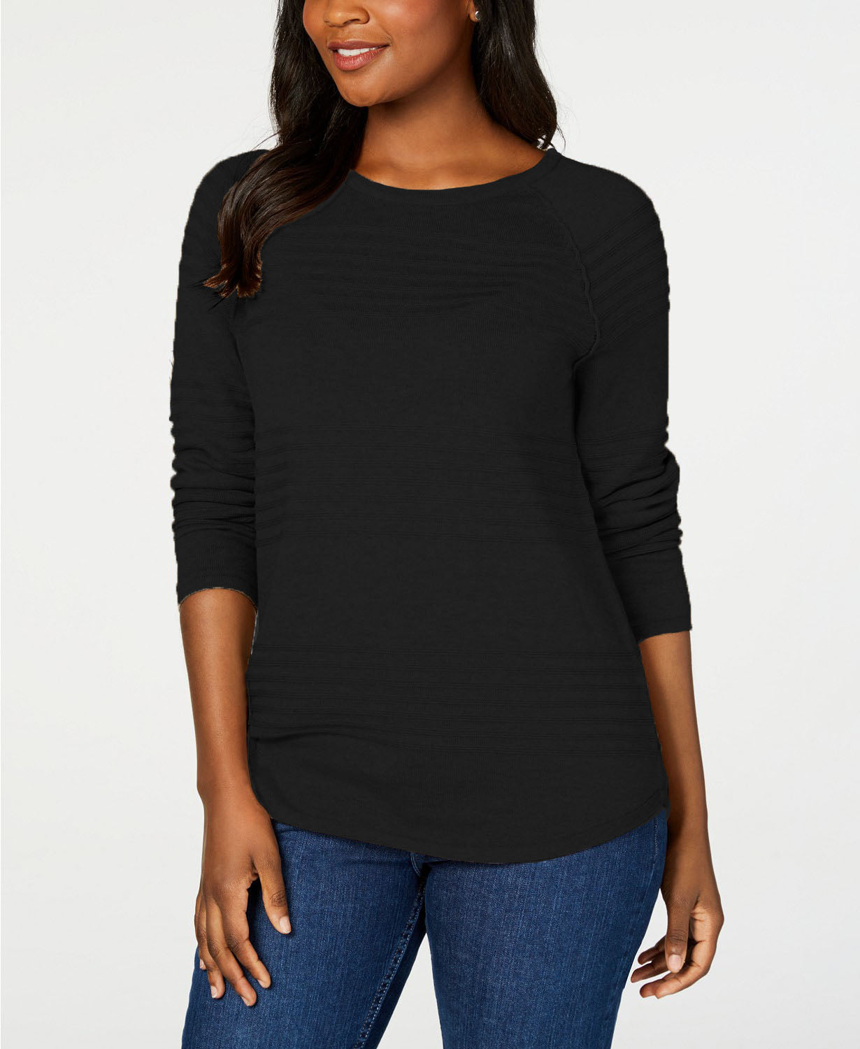 Karen Scott Women's Ribbed Cotton Pullover Sweater Blue Size Medium