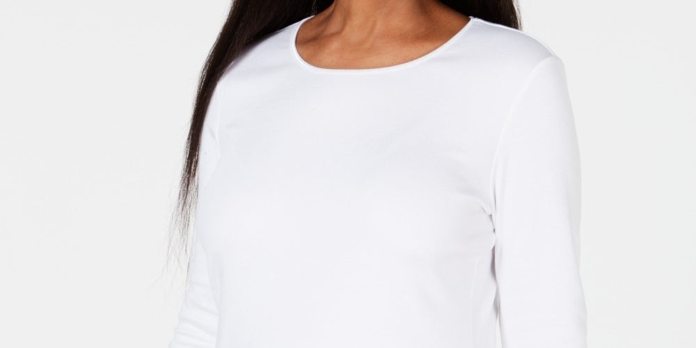 Karen Scott Women's Satin-Trim Scoop-Neck Top White Size Large