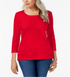 This scoopneck top by Karen Scott is the perfect staple for any wardrobe.| Available in Regular & Petite sizes| Scoop neckline| Three-quarter sleeves| Petite sizes designed to fit and flatter 5'4 and under frame| Hits at hip| Generous sizing; if in-between sizes
