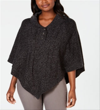 Karen Scott Women's Shawl Collar Poncho ASH Black Size L/XL