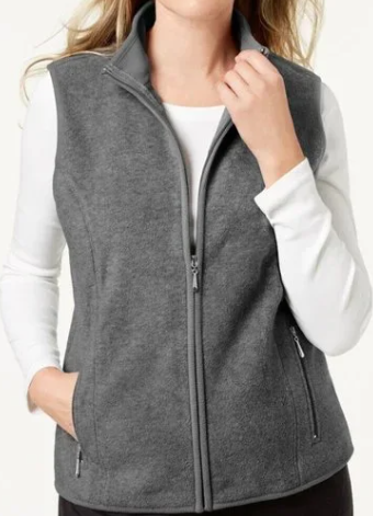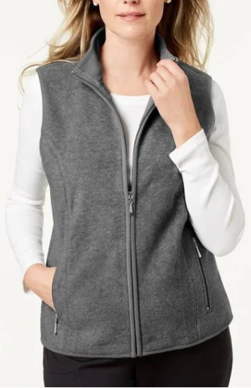 Karen Scott Women's Sport Quilted Fleece Vest Gray Size Medium