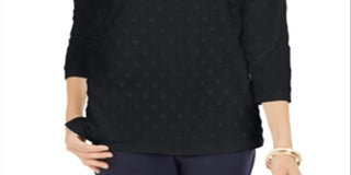 Karen Scott Women's Sport Textured Dot 3/4 Sleeve Top Black Size Small