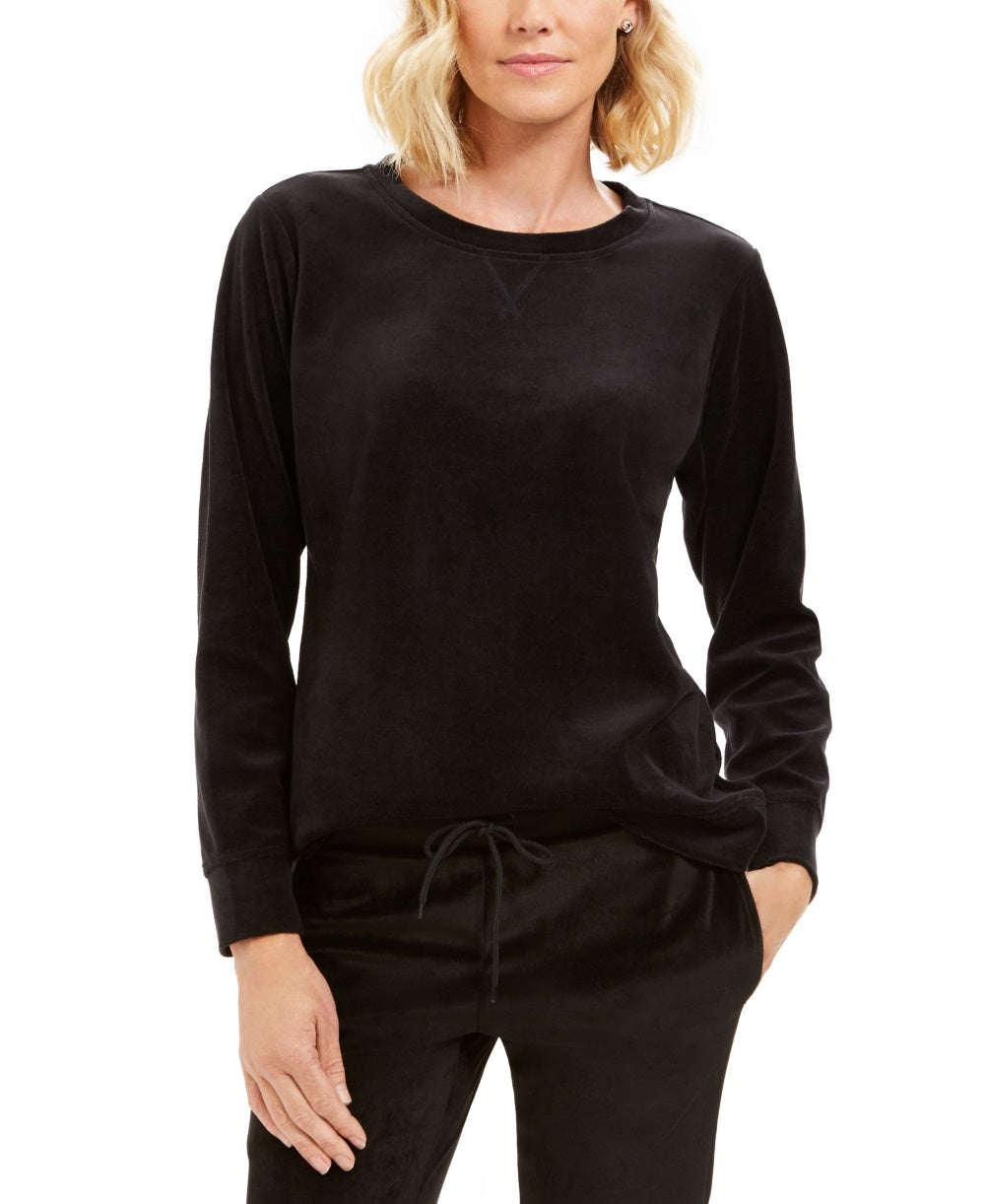 Karen Scott Women's Sport Velour Sweatshirt Black Size Small